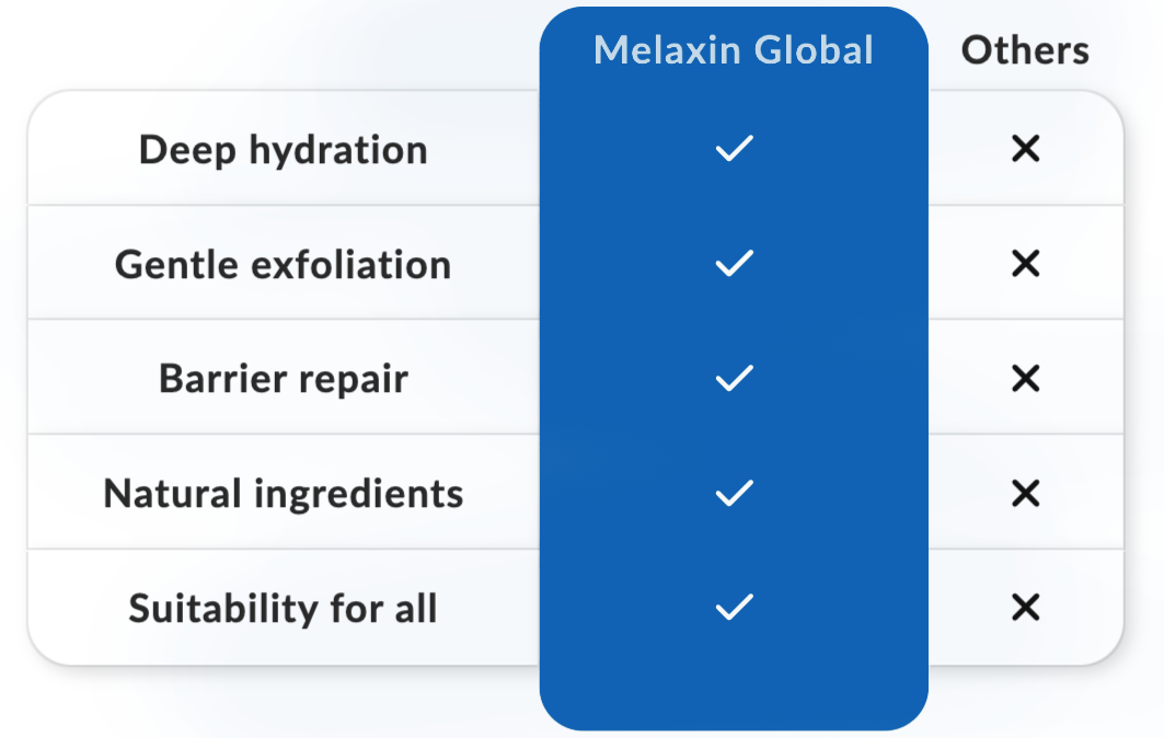 Melaxin Global’s essence offers more than just hydration — it gently exfoliates, repairs your skin barrier, and nourishes deeply with natural, skin-loving ingredients. Suitable for all skin types, without compromise.